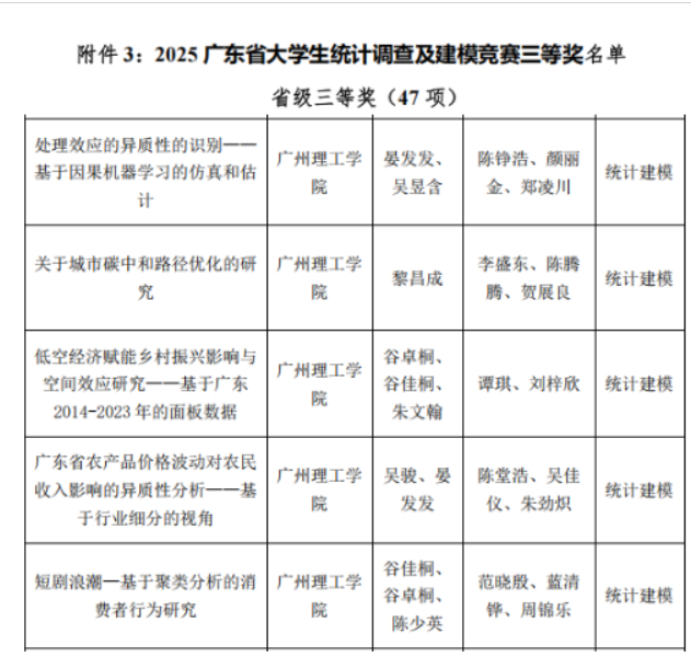 近日,2025年广东省大学生统计走访及建模竞赛圆满终结。我校经济管制学院学子凭借塌实的专科修养、转变的策划视角和严谨的学术格调,在本次竞赛中施展优异云开体育,共斩获省一等奖2项、省二等奖1项、省三等奖5项,充分展现了我校的教学后果和学生的践诺转变能力。